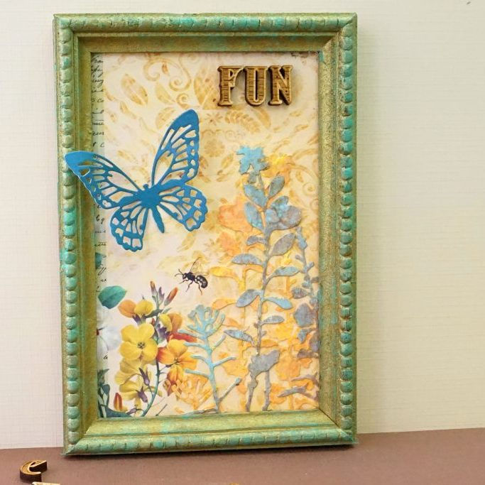 Pero hoy intentando hacer un marquito decorativo para colocar en mi estudio, y queriendo usar las Oxide, me ha salido esta composición que me parece un poco más vintage de lo que suelo hacer habitualmente.